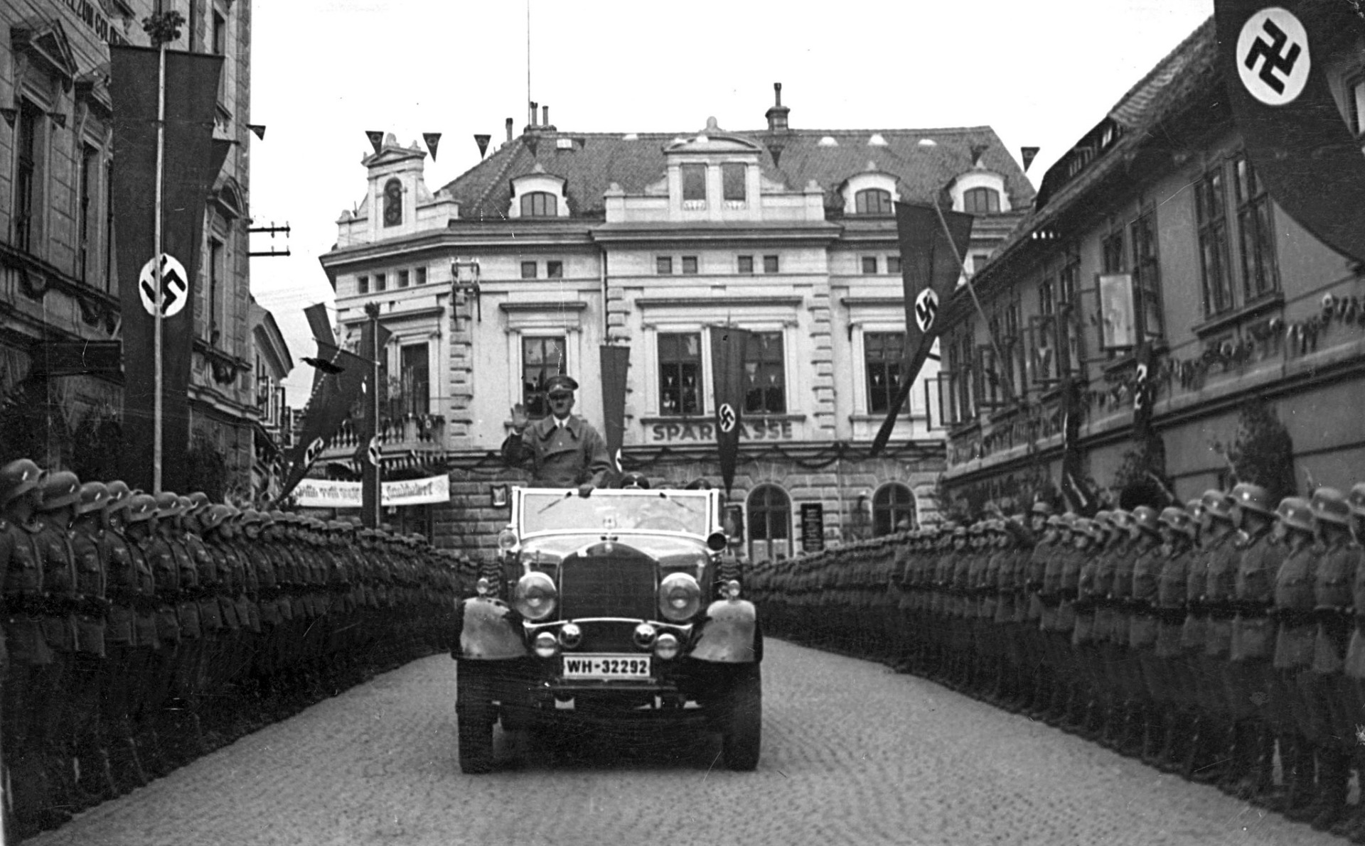 Píše se 6. říjen roku 1938. Po právě okupované severočeském pohraničí projíždí Adolf Hitler. Na všech místech je bouřlivě vítán. Už nikdy okupaci. Už nikdy zradu. Pravda vítězí (autor příspěvku Jaroslav Beneš)