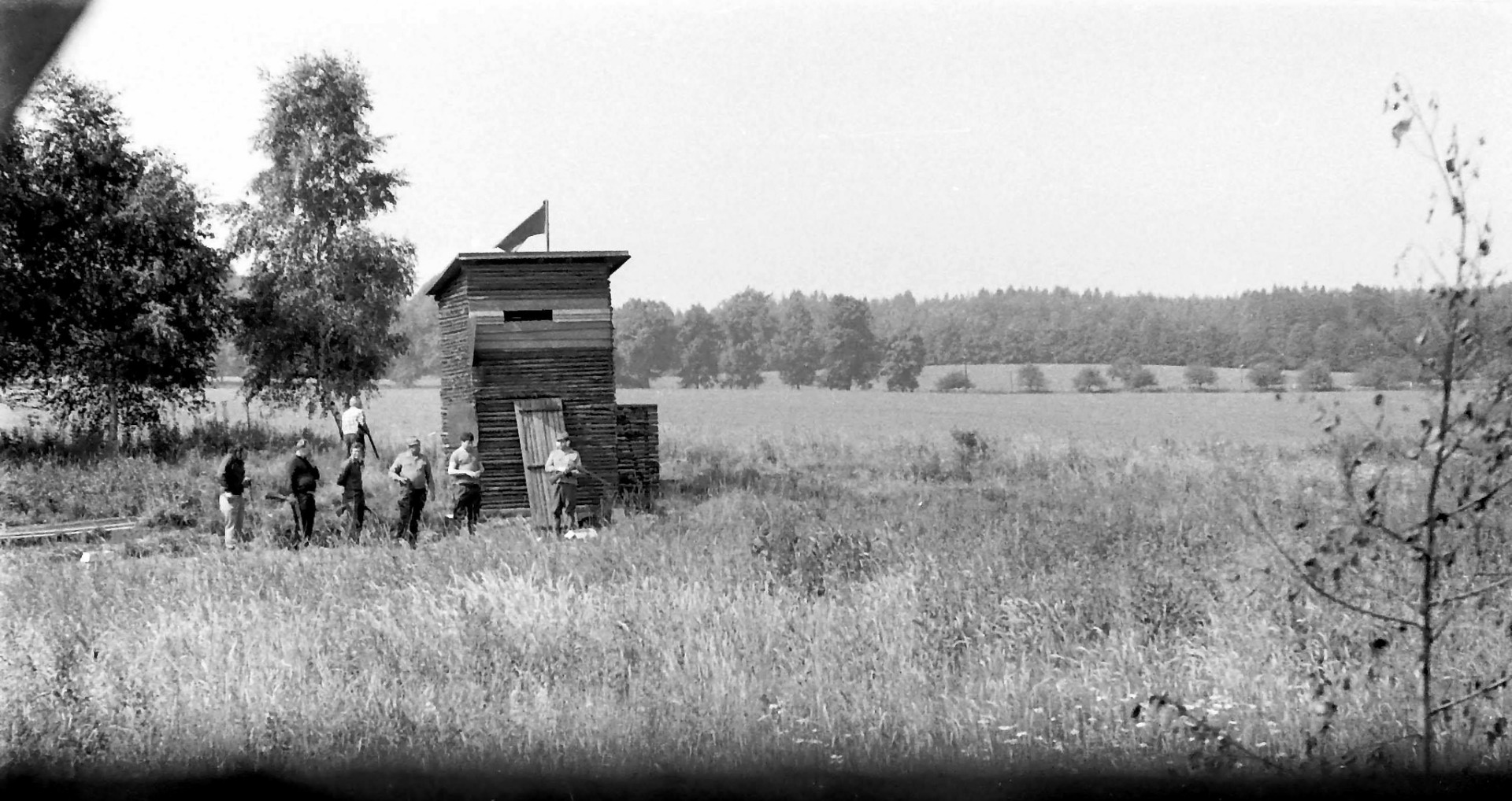 v bráně je vidět kopec za kostelem, vlevo od silnice na Habartice