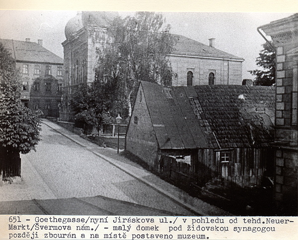 Dolní náměstí) směrem do Goethgasse, dnešní ulice "U Muzea"-