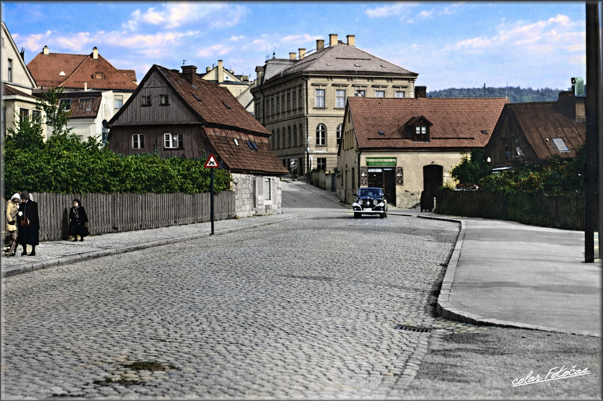 vozovka a kamenné obrubníky podtrhují tehdejší urbanistický standard.