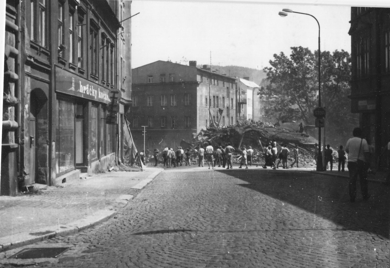 snímek z odbourávání domů v Gotwaldové ulici ještě za "socíku" z důvodů