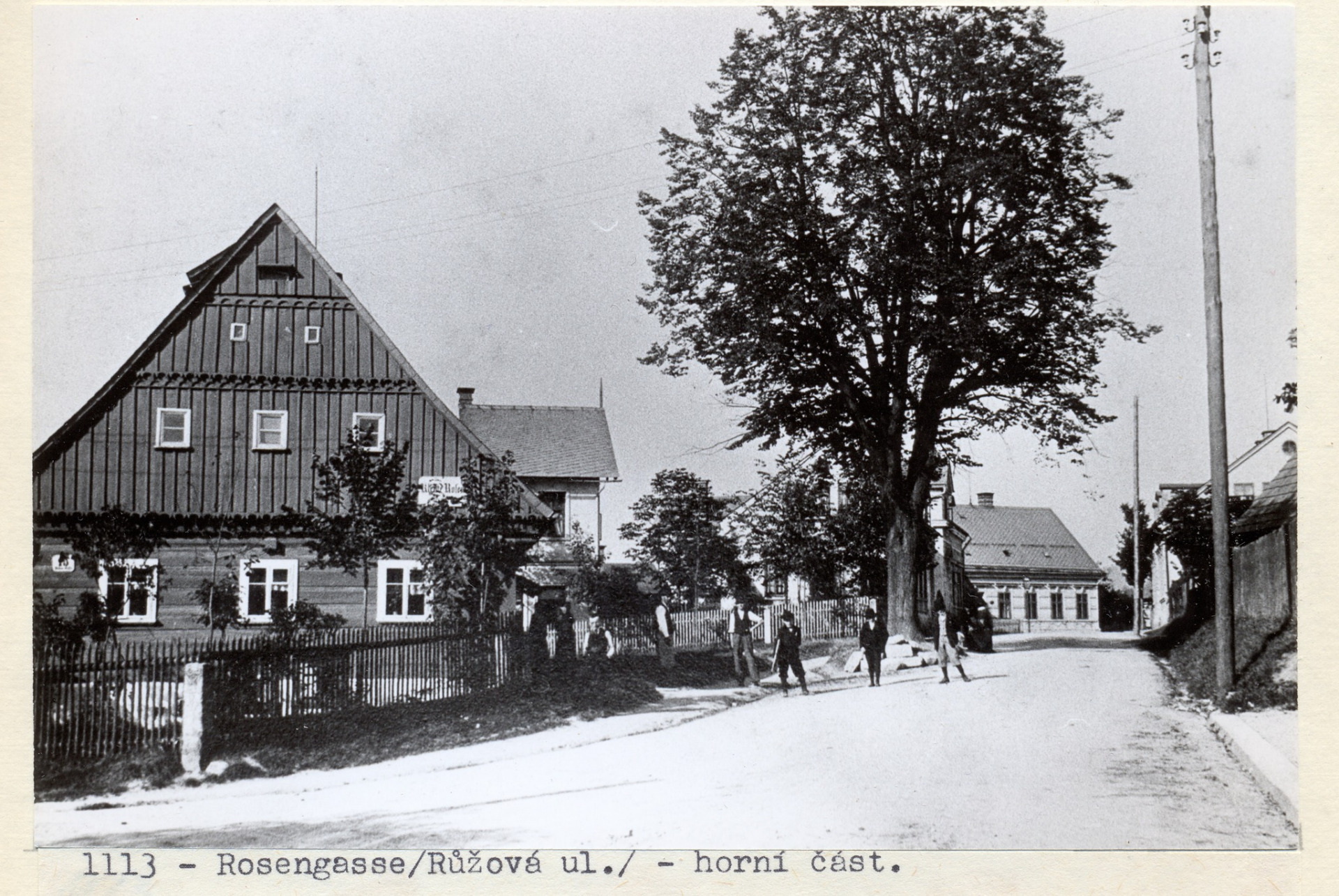 Gablonz a. N. – Wustung-Bräuhausgasse / dnešní Revoluční ulice – křižovatka s Pivovarskou ulicí (Bräuhausgasse)