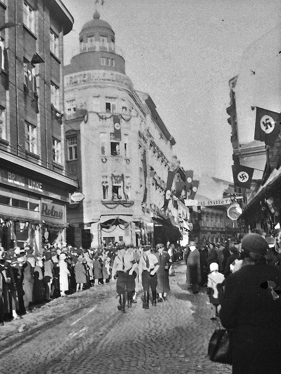 v letech 1939 - 1945 byla odstraněna česká část pojmenování. Po roce