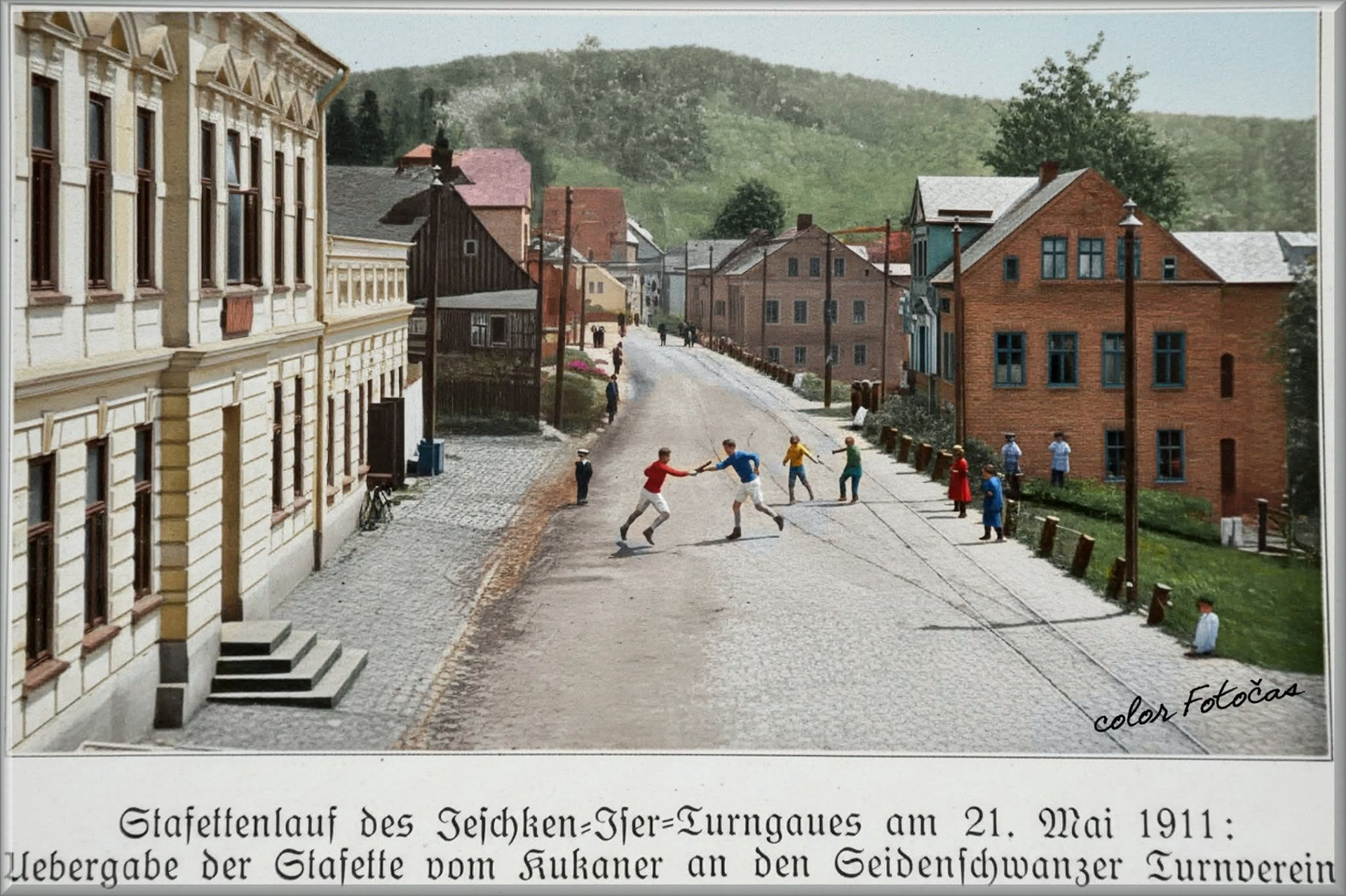 Náhodné WINDOW do minulosti...Dominantou města je bezesporu Tyršův park. Podmáčený pozemek v údolní nivě byl roku 1884 zakoupen místním okrašlovacím spolkem.(color Fotočas)