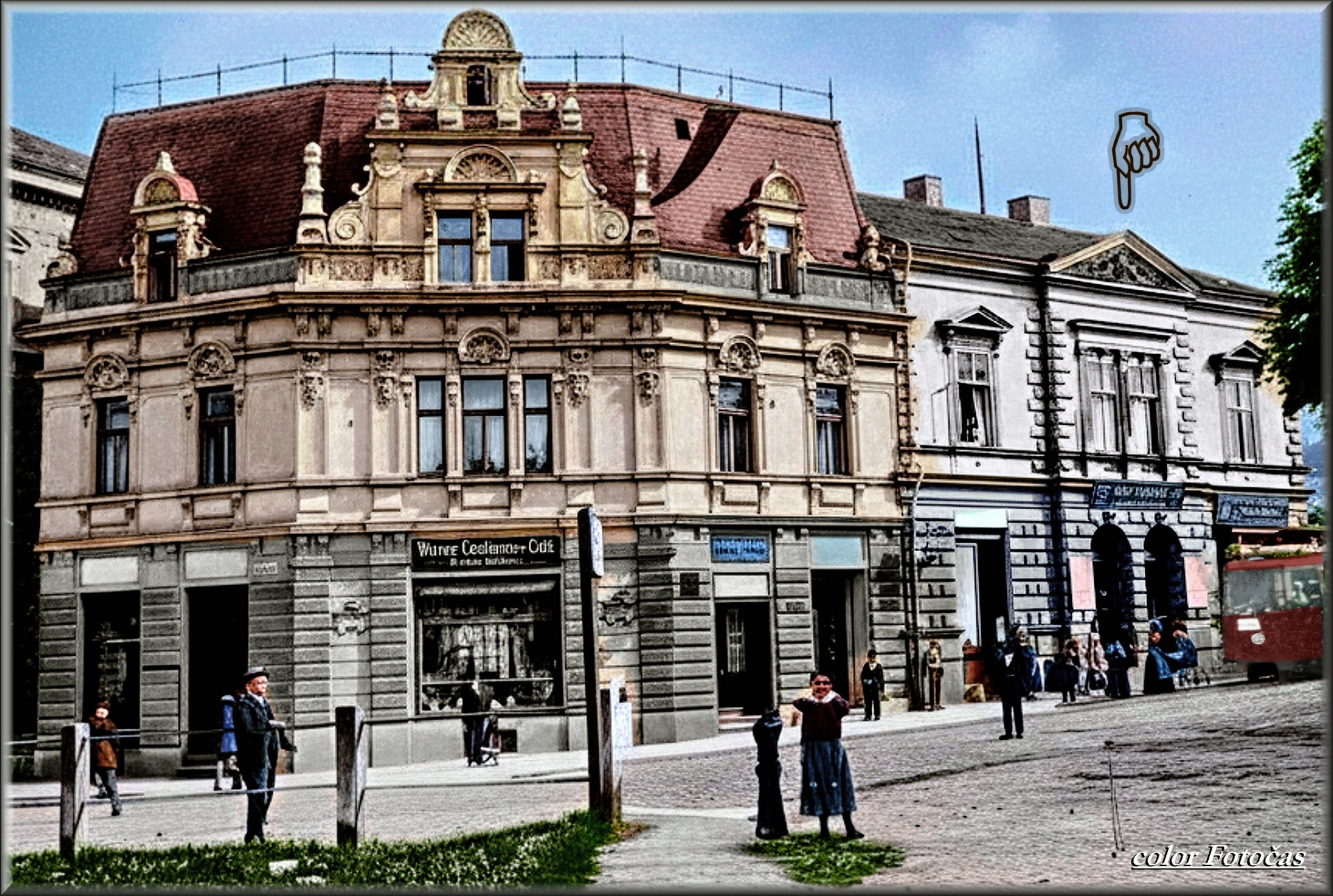 Pro orientaci _ dnes napravo od ní Jablonečákům známé řeznictví a uzenářství i s jídelnou v suterénu.