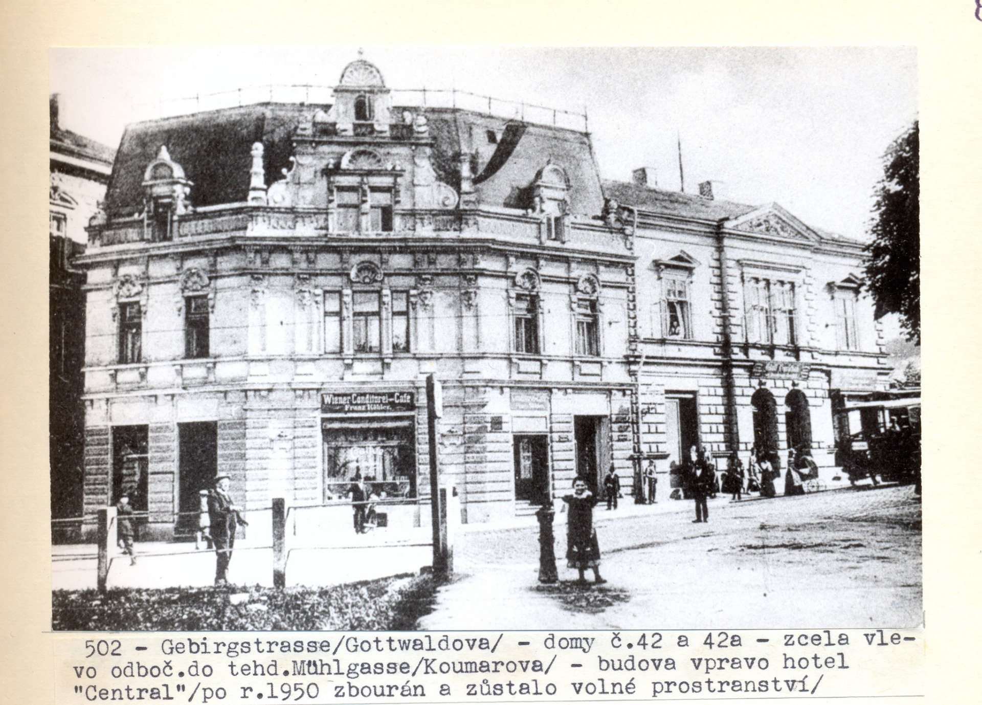 Kavárna Central na Gebirgsstrasse (dnes ulice Podhorská).