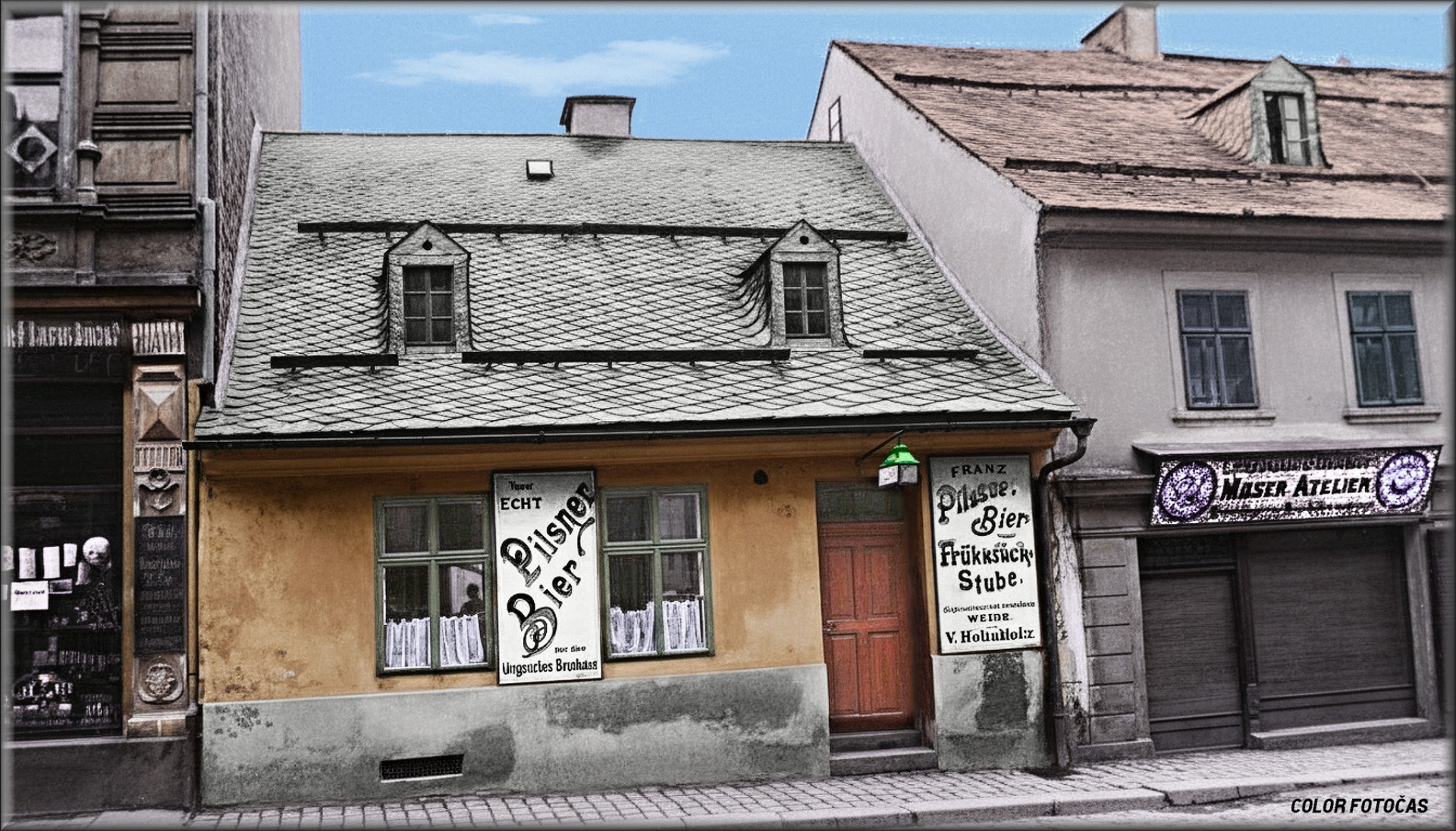 Malâ sympatickâ hospůdka na začátku dnešní Podhorské ulice .