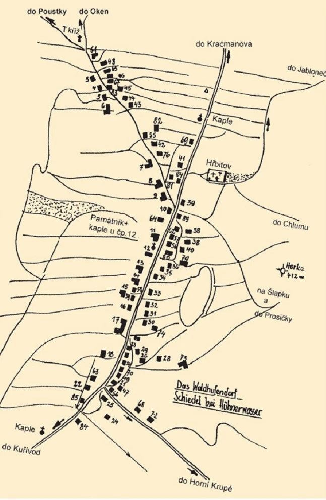 Židlov (Schidel), poměrně veliká obec ležící