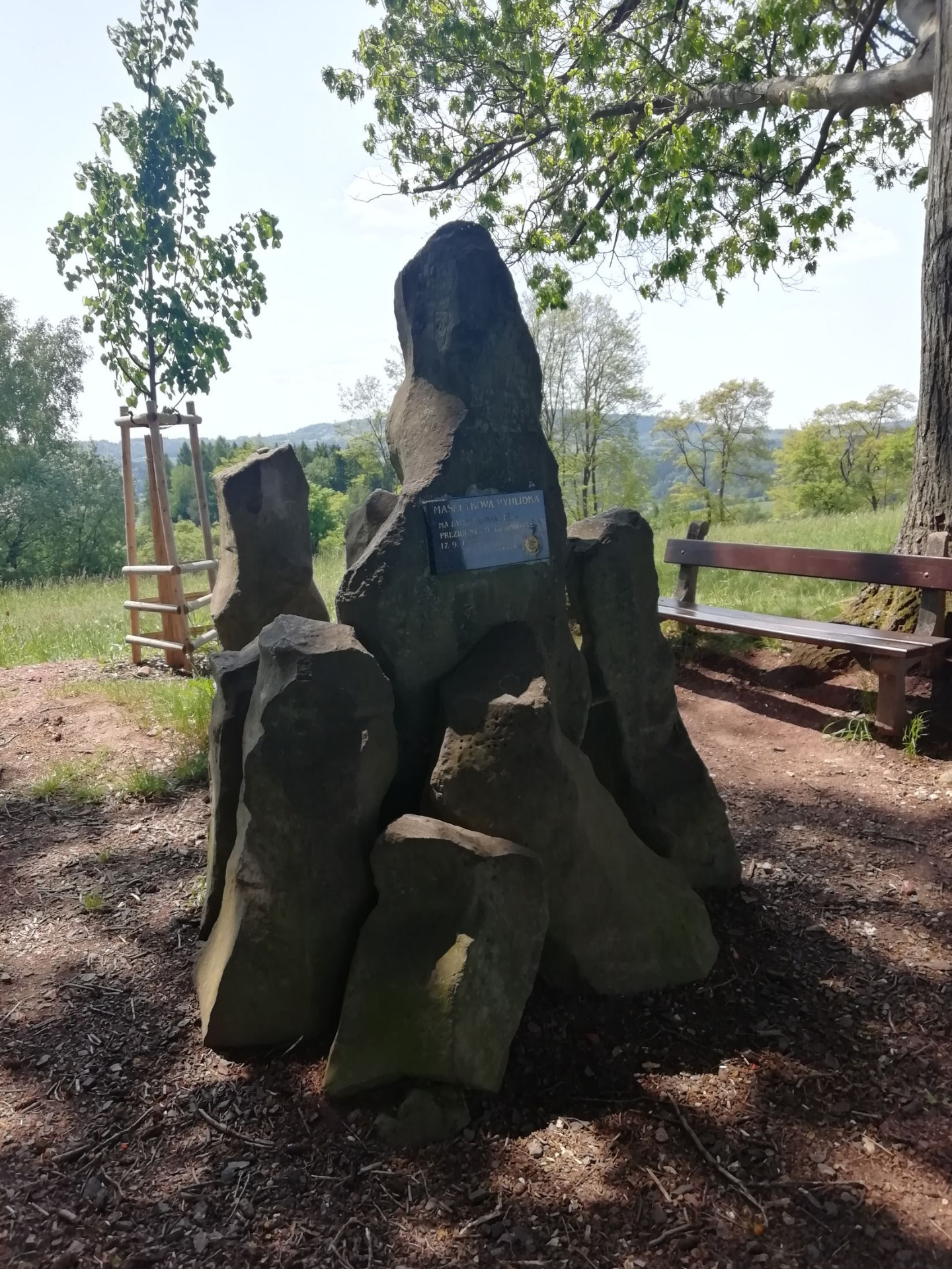 Masarykova vyhlídka mezi Cimbálem a Janečkem letos oslavila 100 let. Byla vybudována Klubem československých turistů a zpřístupněna v červenci 1925 v místě které navštívil náš první prezident o tři roky dříve. Masarykova vyhlídka se nachází ve výšce 497 m. Na snímcích je pohled na Kozákov (743 m) kde již stojí Riegerova turistická chata( postavena 1928).