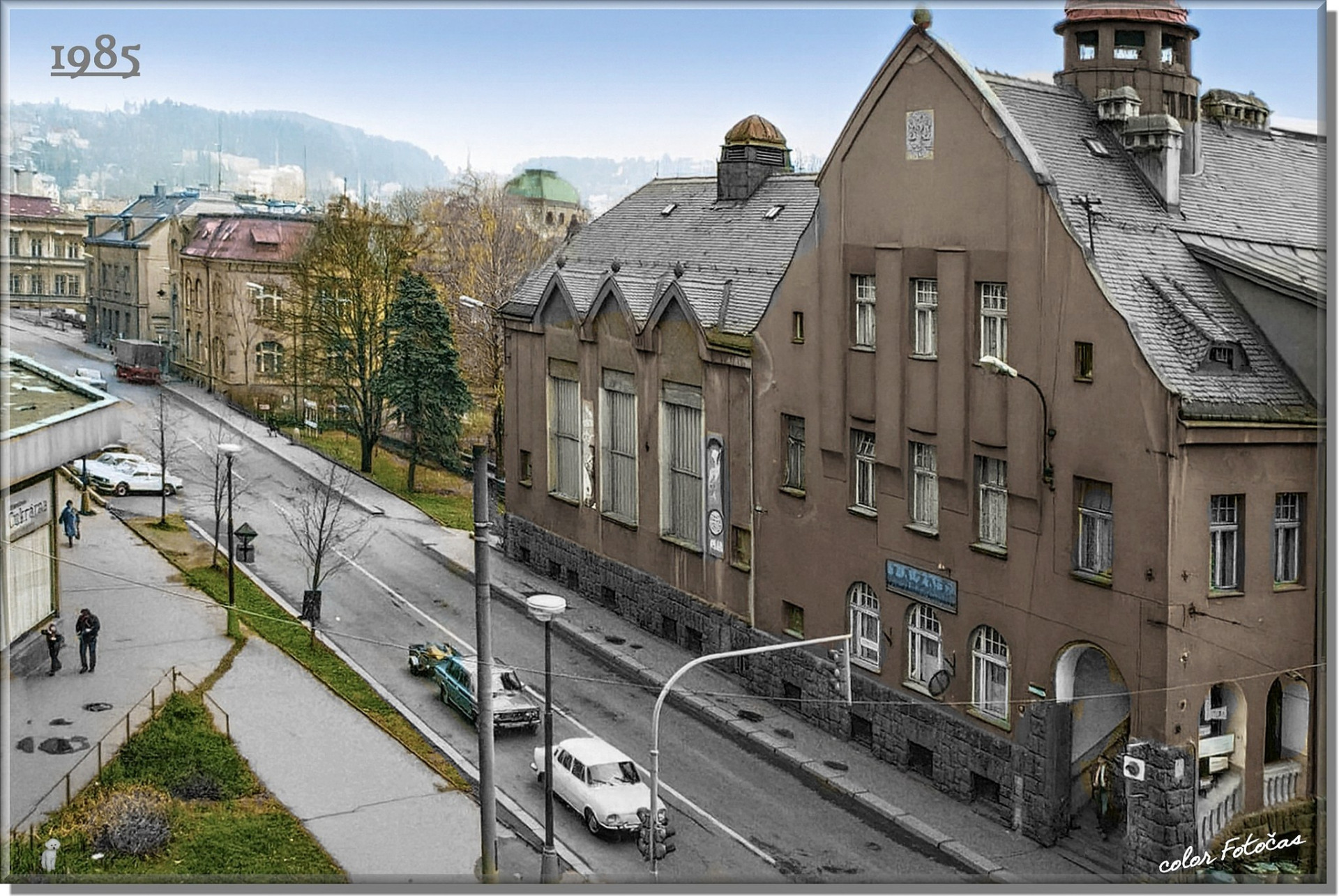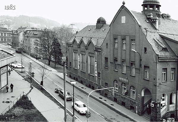 snímku z roku 1985 se před námi otevírá pohled na budovu jabloneckých