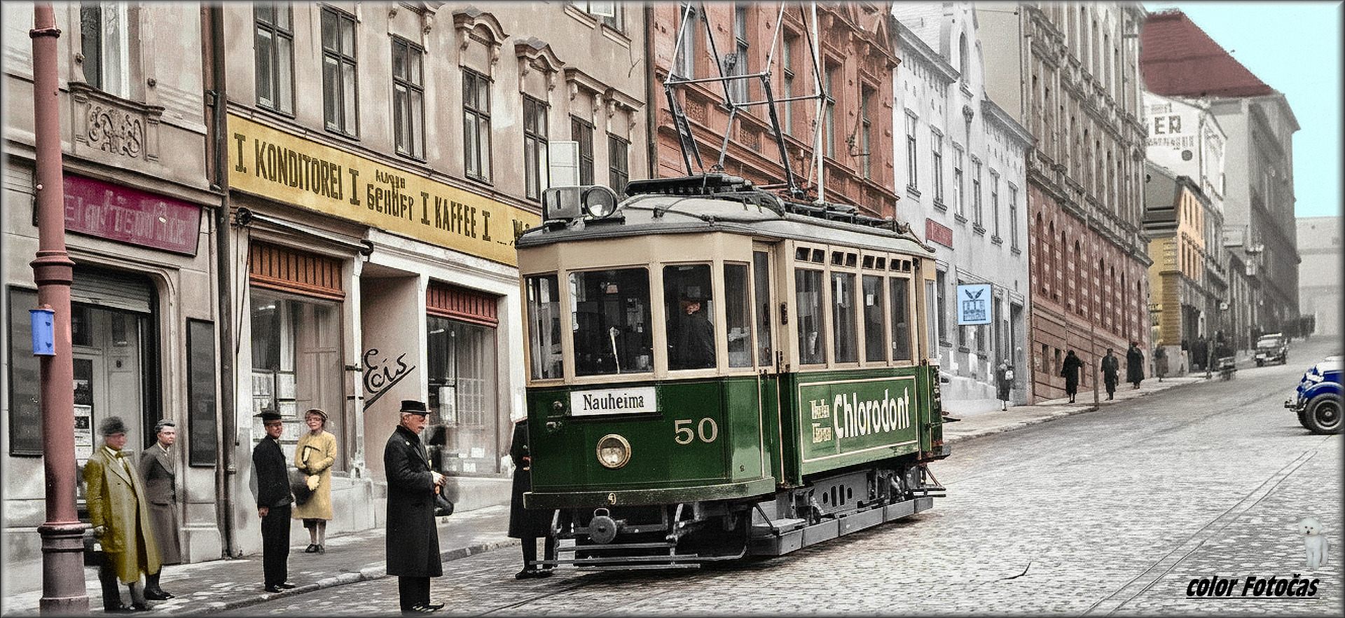 Krásná fotografie z jabloneckého Alter Marktu 30 let minulého století v největším kolejovém stoupání střední Evropy.