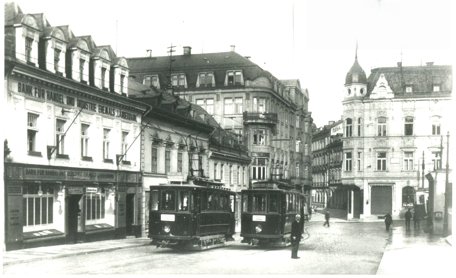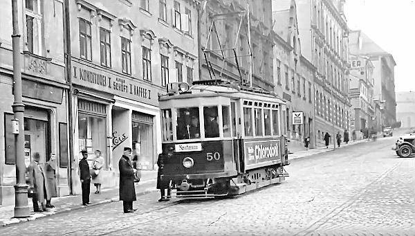 na jablonecké Rathaus v roce 1930 byla součástí jednokolejné sítě s