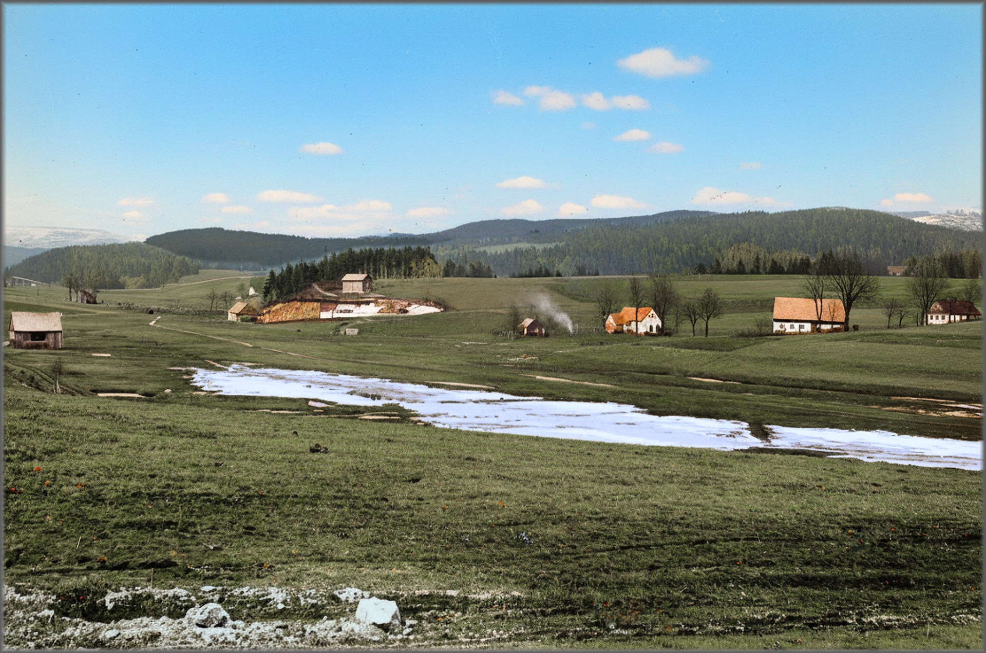 zachycuje Mšenskou louku v době, kdy ještě byla klidnou pastvinou