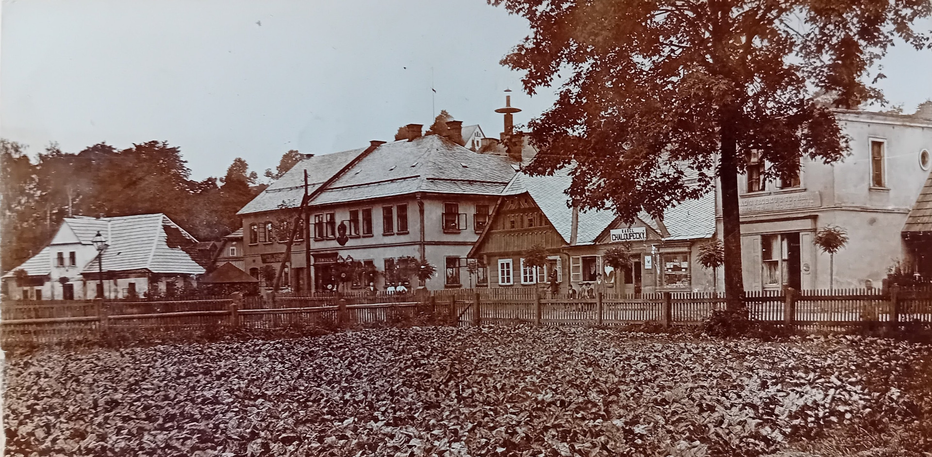 .. V roce 1894 zakoupil v Benešově u Semil , v místech zvaných " Na Hradišťatech nebo i Hradiště " velký pozemek ... ponejprve postavil nákladný jez na řece Jizeře a následně v roce 1895 velkou textilní továrnu ... můžeme sledovat , že krom hostinského , obchodníka a hoteliéra se stává továrníkem ... jak je nemilou a nechtěnou tradicí mnohých textilních továren v našem okolí , tak i tato továrna v roce 1909 skoro celá vyhořela , avšak jako mnozí jiní majitelé textilek , i on ji téhož roku celou obnovil a zahájil opět její výrobu ... ale to jsem trochu odbočil ...... hotel sloužil až do znárodnění i s jeho už od začátku využívanými obchodními místnostmi ... i poté v jeho prostorách byly nadále obchody , jako Polotovary nebo Drogerie ... avšak přichází rok 1967 a s ním rozhodnutí , které zcela zásadně změní vzhled a účel hotelu ... tehdejším režimním rozhodnutím byla budova upravena na " kostku " a původní stavební sloh navždy zmizel lidem z očí ... v přízemí , kde byly prodejní prostory , vzniká restaurace a pivnice III. cenové skupiny " Slávie " ... stavební úpravou budovy vzniká druhé patro , v původním prvním sídlí Odborová rada ROH , v druhém novém , Okresní výbor SSM ... po roce 1989 ještě nějaký čas restaurace funguje do zániku podniku Jednota Jilemnice a pak pod soukromým nájemcem ... dnes je v přízemních prostorách vietnamská prodejna ošacení , obuvi a jiného sortimentu ...