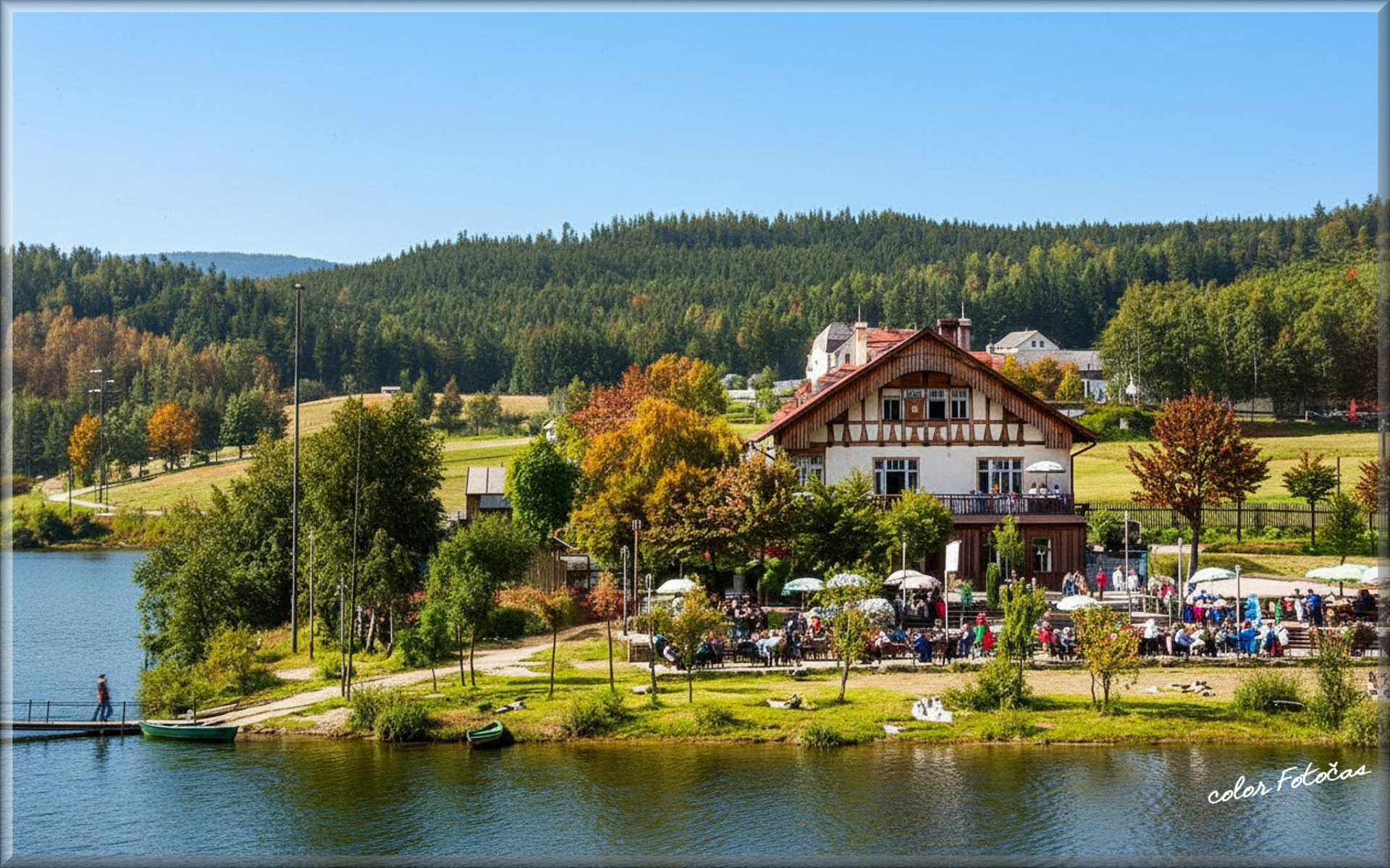 Strandcafé (pozdější Tajvan) stálo na západním břehu přehrady. Bylo