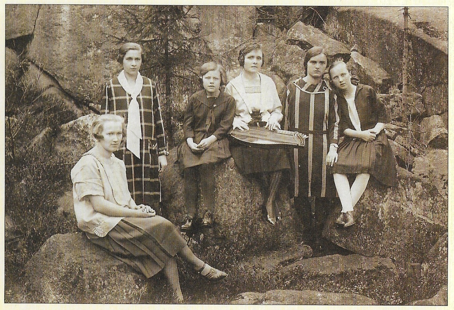 To je autentické znění slov, která jsou napsána na zadní straně této fotografie. Na Smržovce byl totiž již v roce 1895 evidován Der Zitherclub neboli Klub citeristů. Jeho členkou byla i učitelka Klára. V těch dobách byla hra na cíteru v našem kraji velmi oblíbená a Klára neměla nouzi o žačky. Protože to však byla žena moudrá, dobře věděla, že učení je mučení. Aby tedy hodiny trochu zpestřila, našla místo mezi skalami na černostudničním hřebeni, kam se za hezkého počasí s žačkami vydávala a není pochyb, že se tam tklivé tóny strunného nástroje obzvláště pěkně rozléhaly.