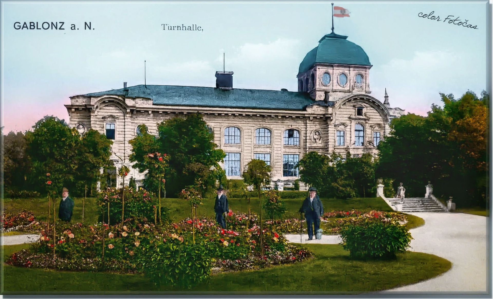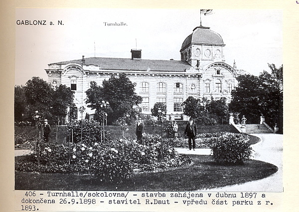 Na fotografiích do roku 1945 není Sokolovna, ale Turnhalle.