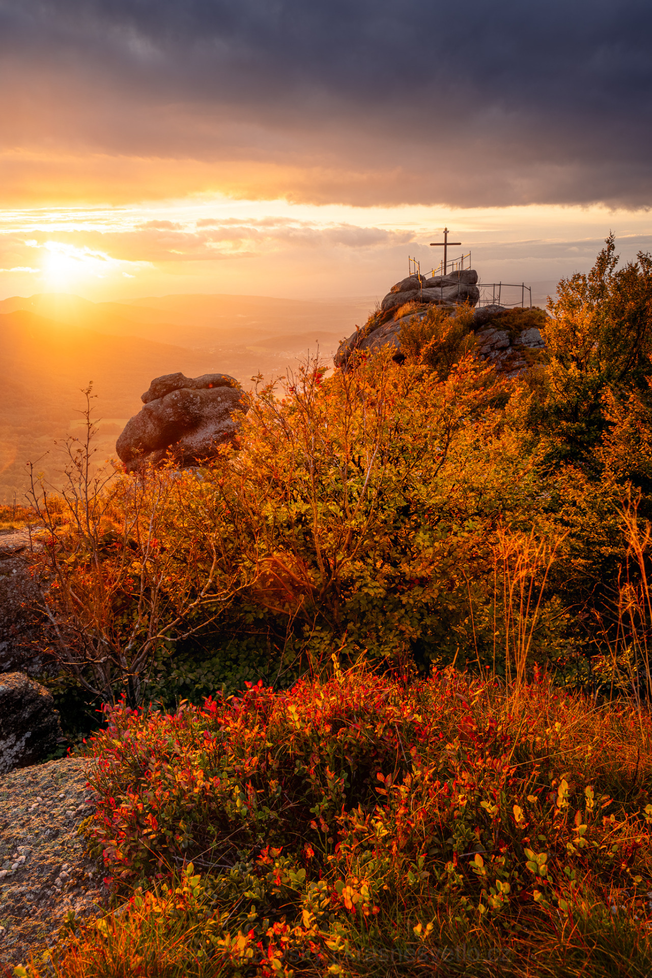Z českého ráje jsem měl cestu do Liberce, kde jsem byl zkontrolovat testovací tisk kalendáře Český ráj 2026. S výsledkem jsem velmi spokojen a zítra jde do ostrého tisku celý náklad. Poté jsem přejel do Frýdlnatského výběžku, kde seděly docela těžké a nízké mraky. Můj cíl Paličník a celý Klínový vrch byl částečně v mlze. Tak jsem si říkal, že z procházky na vyhlídku asi ani žádná fotka nevznikne...Ale potřebuju trénovat fyzičku a proto jsem v plné polní i se stativem vyrazil zdolat docela dlouhý kopec z Bílého Potoka. Nahoře jsem i po převelečení do suchého prádl docela prochladl. Nicméně po asi 30 minutách focení mi svila naděje, že by se mraky mohly zvednout a rozestoupit. No a to se nakonec kolem šesté skutečně stalo. Fotek jsem pořídil hodně, jako první zveřejňuji kompozici na výšku.