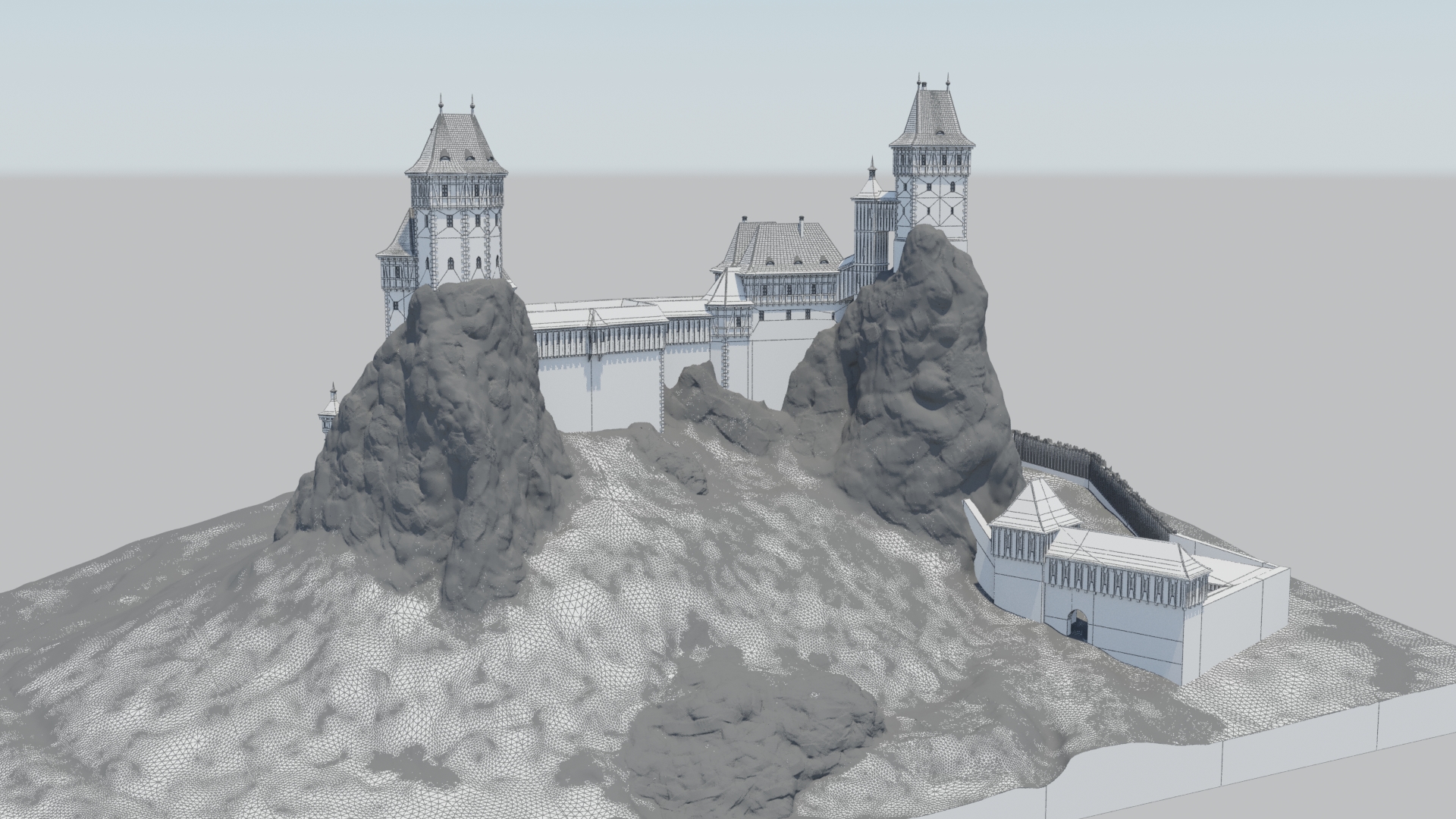Můj model je dělaný v Blenderu a je bez textur, protože hlavní myšlenka je 3D tisk. Terén je zpracován z geodat, přišlo mi to jako nejvhodnější řešení. Podoba hradu je umístěna do počátku 15. stol. a je výsledkem kombinace půdorysů, kreseb a využití zpracovaného 3D terénu jako pomůcku pro umisťování a velikost některých staveb v rámci hradního jádra. Přiznám se, že palisády jsou už hodně teoretické. Ví se, že tam nějaká palisáda probíhala, a že to byla pouze určitá kruhová výseč. Podobně je to s budovami pod věží Panna. Tam jsem vycházel pouze z půdorysů a jediné, co vím je, že tam nějaká struktura stála. Více již nechám na odbornících.