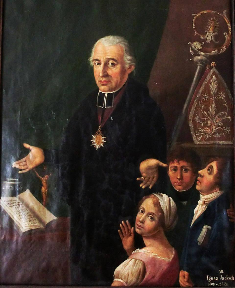 Je další z významných rodáků ze Stráže pod Ralskem. Narodil se 31. ledna 1754 v domě č.p. 109. Byl synem horního mlynáře Františka Jaksche. Dne 21. září 1777 byl v Praze vysvěcen na kněze. Do Cvikova přišel 29. ledna 1784 jako kaplan, kde byl 9. prosince 1784 jmenován děkanem. 16. srpna 1795 se stal čestným kanovníkem katedrální kapituly sv. Štěpána v Litoměřicích. Dne 8. května 1799 byl opět vikářem okresu Jablonné. Od 6. června 1806 působil jako konsistornim radou a školním inspektorem. Dne 1. července 1808 následovala jeho prezentace a 28. července 1808 je ustanovený za arciděkana v Horní Polici, jako 7. arciděkan, který vystřídal Václava Hockeho. Dne 11. srpna 1809 se stal vikářem lipského vikariátu. Dne 17. prosince 1814 prostřednictvím dvorního dekretu obdržel jmenování na místo místoředitele gymnázia v České Lípě. Zemřel 16. dubna 1824 v Horní Polici, kde byl i pochován. Byl to katolický kněz, který byl v širokém kraji známý pro svůj samorostlý humor, a proto byl také nazýván " Hockenwenzel ". Byl příbuzných dalšího významného rodáka ze Stráže pod Ralskem Mudr. Antonína Jaksona o kterém už jsem psal. Na obrázku jen Ignác Jaksch a jeho zna.
