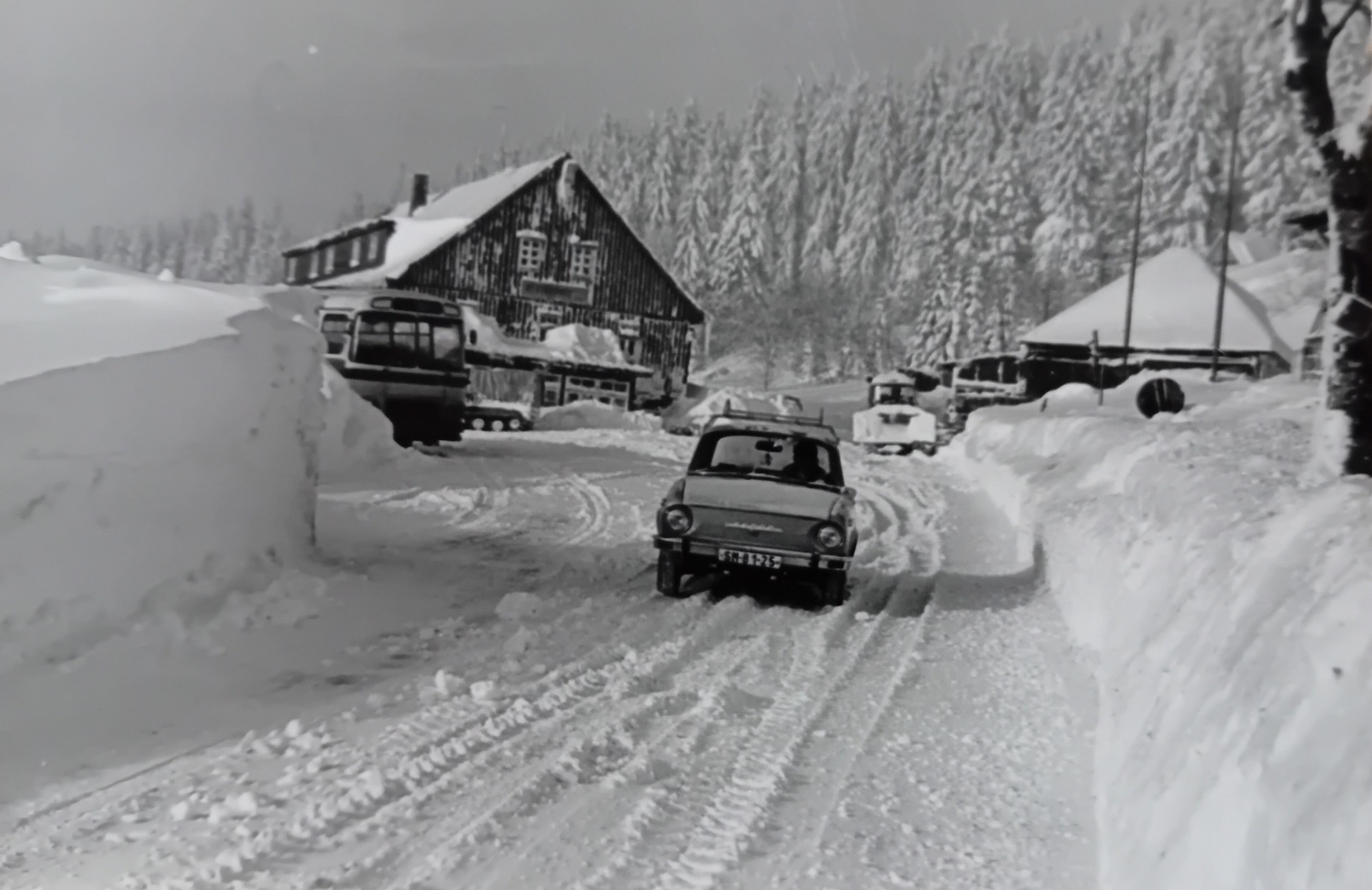 Osmdesáté roky , Rezek v Krkonoších ... šípový pluh z Hrabačova proráží zavátou silnici u chaty ... ovšem kolikrát to bylo i nad jeho síly a možnosti , potom zbývala už jen sněhová fréza Zil ..